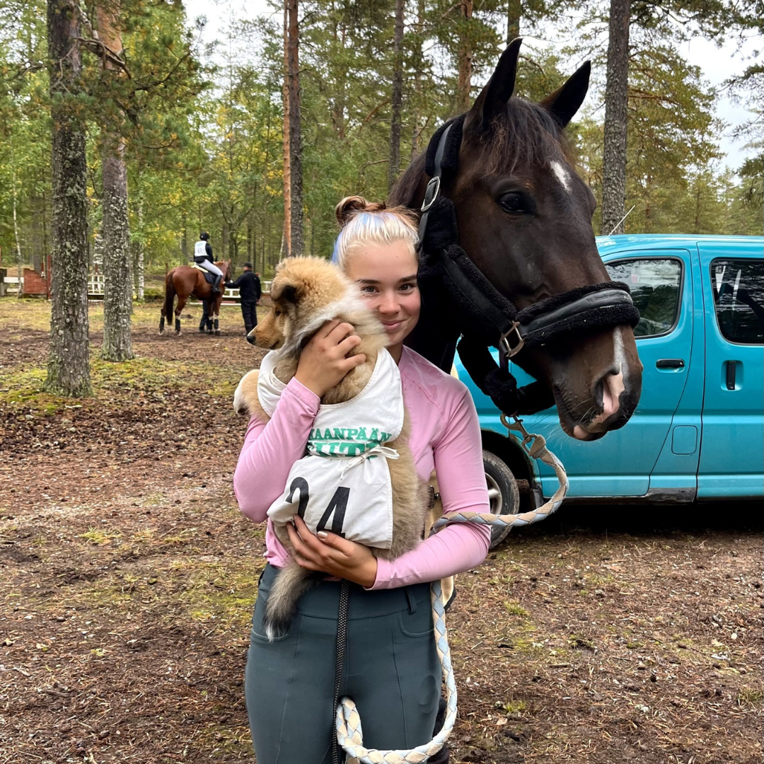 Olen intohimoinen hevosharrastaja. Meillä on kotona ollut hevosia yli kymmenen vuotta omista kilpureista kesäponeihin. Kenttäratsastuksen löysin 12-vuotiaana ja sillä tiellä ollaan edelleen oman hevoseni kanssa. Lisäksi siskon ja äidin kautta valjakkoajo ja vikellys ovat tuttuja lajeja. Hevosten lisäksi olen kasvanut kissojen ja koirien ympäröimänä. Nykyään kotonani Turussa asuvat kissasisarukset Sissi ja Havu.