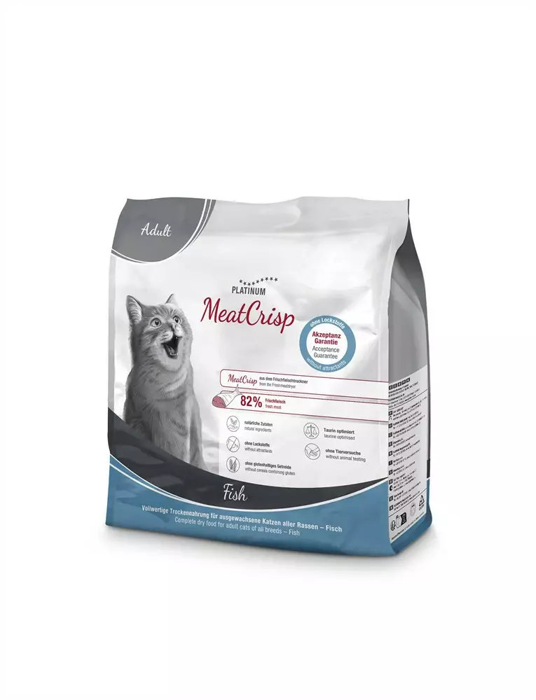 MeatCrisp Adult Fish on laadukas ja innovatiivinen kissan täysravinto, joka valmistetaan Freshmeatdryer-menetelmällä. Ruoka sisältää 82 % tuoretta, ihmisravinnoksi kelpaavaa kalalihaa, ja säilyttää tuoreen lihan luonnolliset mikroravinteet ja aminohapot. Tämä tekee MeatCrispistä kissan luonnollista saalista paremmin vastaavan vaihtoehdon kuin useimmat perinteiset kissanruoat.