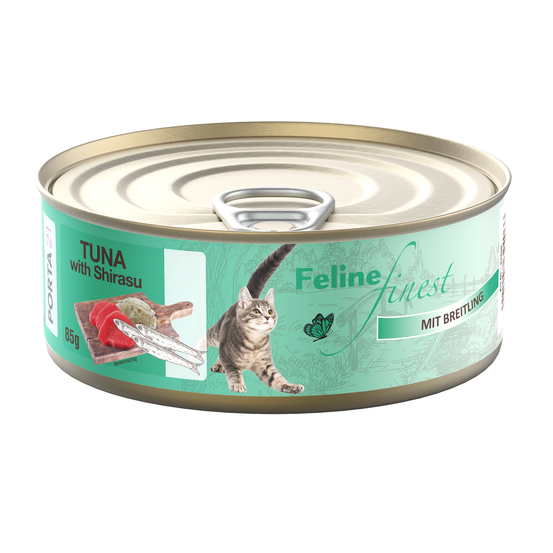 PORTA21 Feline Finest Tonnikala shirasun kanssa herkullisessa hyytelössä tarjoaa kissallesi erityisen hienostuneen herkkupalan. Se sisältää 100% täysin luonnollisia, tuoreita ja korkealaatuisia ainesosia, ilman väriaineita ja säilöntäaineita. Mehevät tonnikalafileet ovat peräisin kestävistä kalastuksista, ne käsitellään käsin ja keitetään hellävaraisesti omassa liemessään. Aito maku tarjoaa täydellisen nautinnon todellisille herkkusuille.