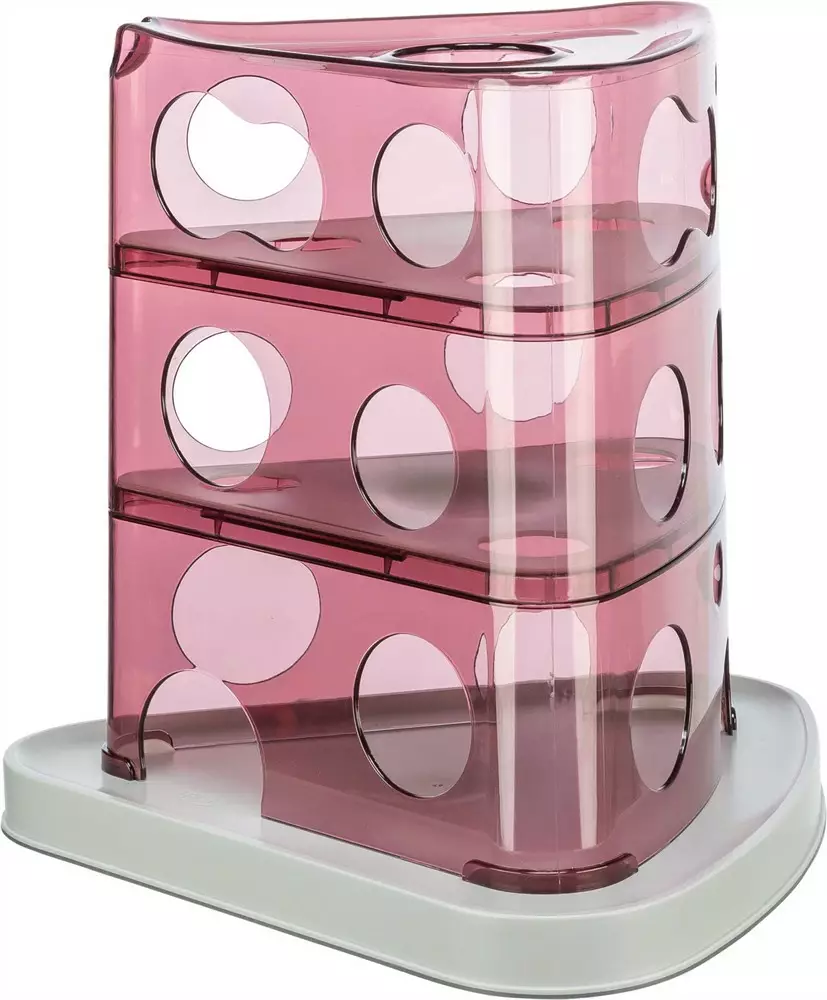 Älykäs ja aktivoiva lelu uteliaille kissoille. Kolmikerroksinen rakenne tarjoaa haastetta ja tekemistä, kun kissa yrittää saada herkut ulos eri tasoista tassuillaan.
