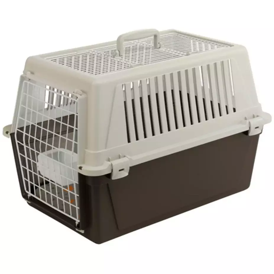 Näppärä päältä tai päädystä lastattava kuljetusboxi. Sopii niin pienille koirille, kissoille, freteille tai pieneläimille. Kuljetusboxin mukana tulee alusta ja juomakuppi.