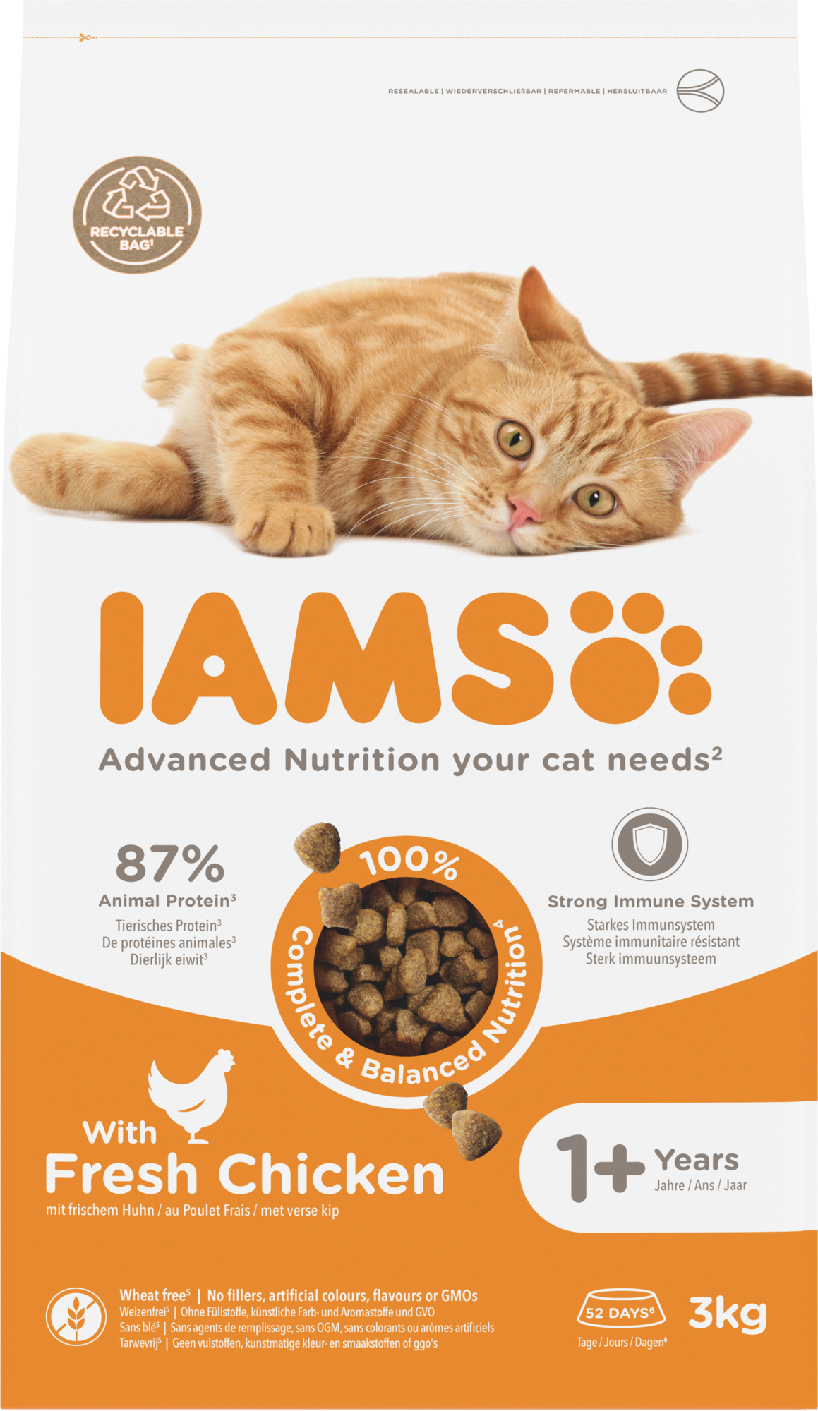 Koostumus:Kuivattu kana & kalkkuna 40% (kana 24%, luonnollinen tauriinin lähde), maissi, durra, porsaan rasva, tuore kana (4.1%), kuivattu juurikasmassa (1.7%), kanakastike, frukto-oligosakkaridit (0.69%), kaliumkloridi, kalaöljy, kuivattu panimohiiva.