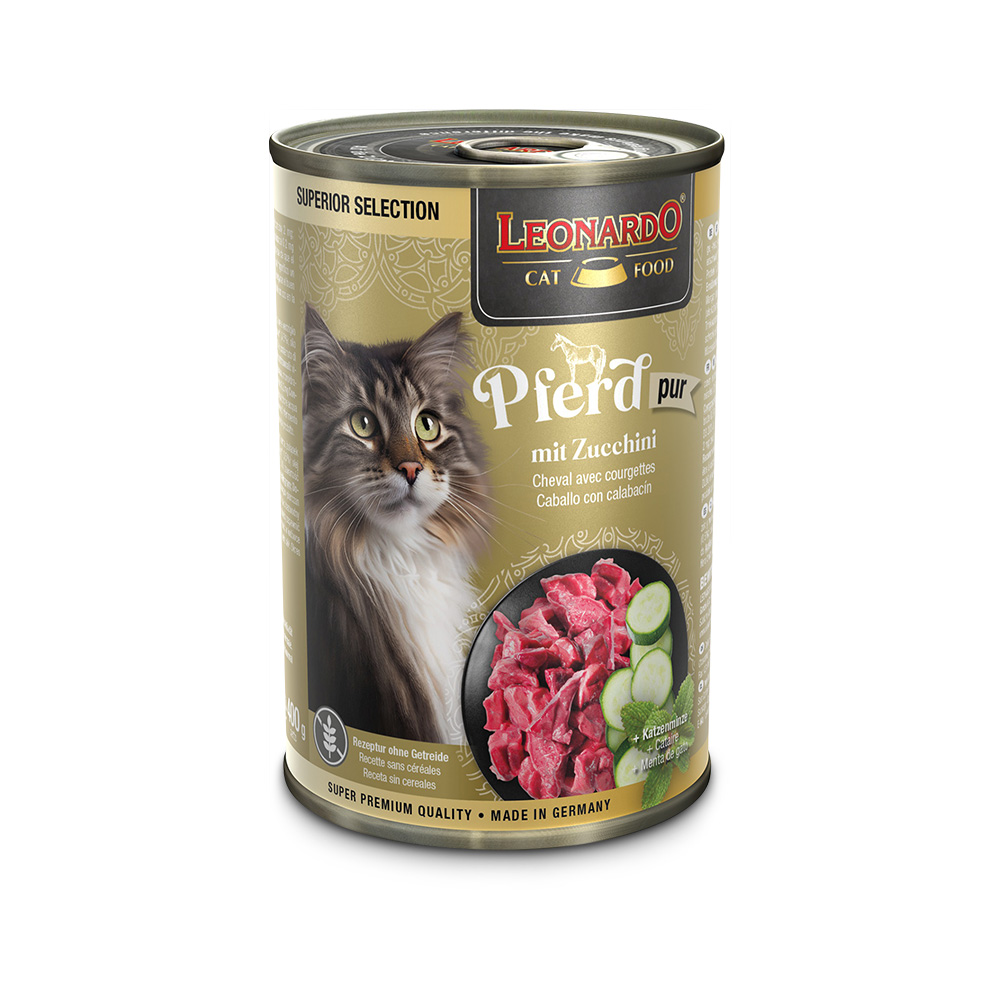 Leonardo uperior Horse + catmint runsaasti korkealaatuista hevosenlihaa ja muita osia (hevosesta) tarjoaa erityisen makuelämyksen.