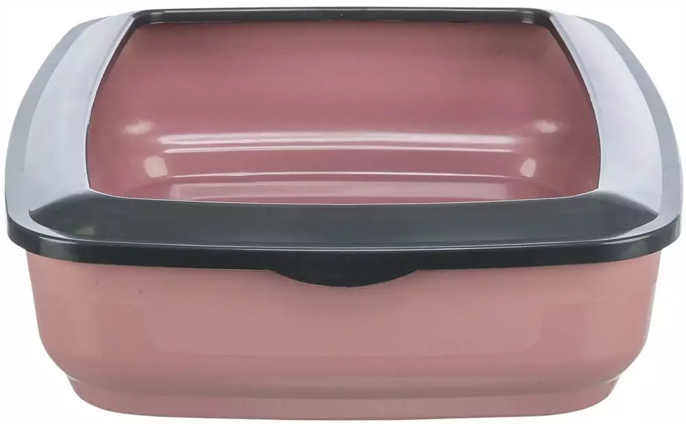 Kierrätetystä muovista valmistettu kissahiekka-astia. Irrotettava, sisäänpäinkääntyvä reuna estää pahimmat roiskeet ja on helposti poistettavissa puhdistusta varten.
