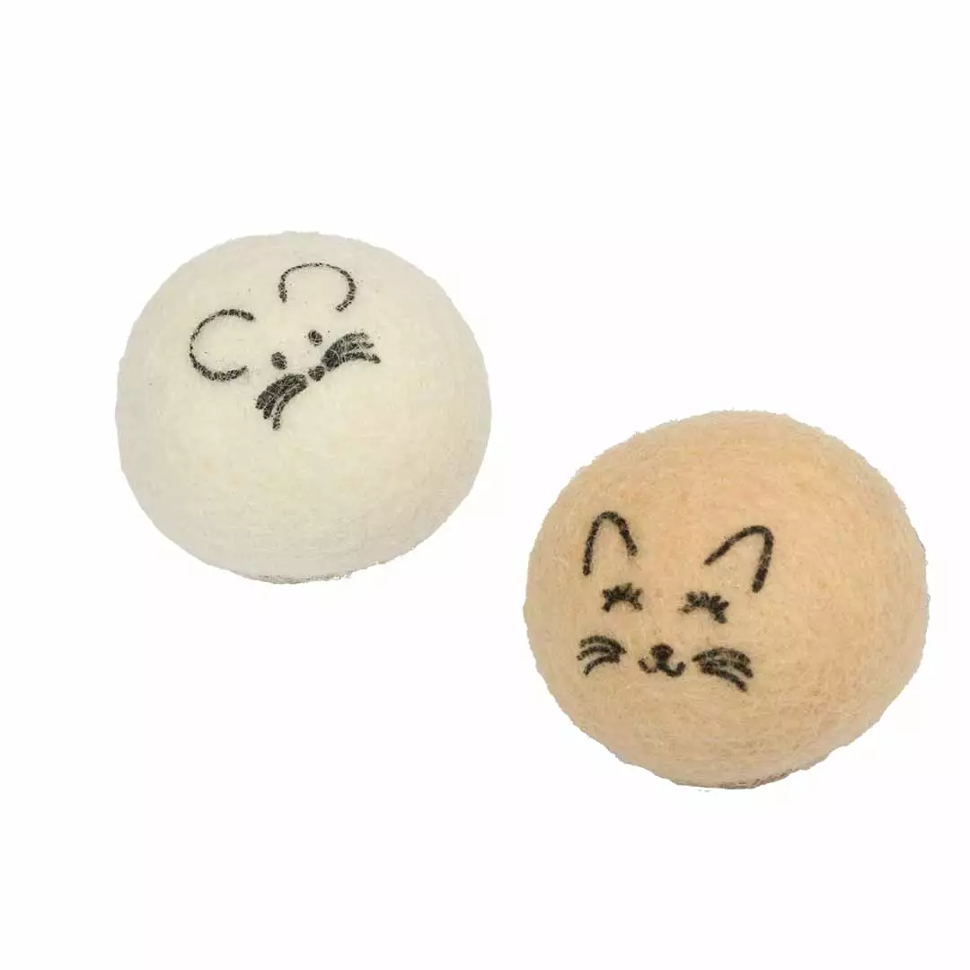 Kevyesti lentävä huopapallo kissan leikkeihin. Palloa on kahta väriä ja niissä on joko kissan tai hiiren naama.