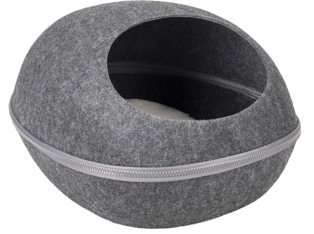 Luolamainen pesä on valmistettu huovasta, mukana irrotettava ja pestävä pohjatyyny ja itse pesän saa puhdistettua kostealla liinalla. Pesän saa kahteen osaan vetoketjun avulla.