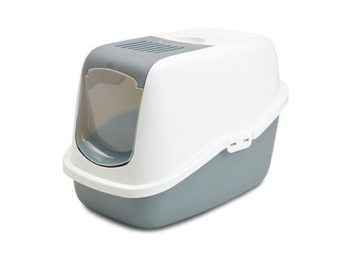 Modernisti muotoiltu katettu kissanvessa. Aukenee päältä, helppo ja nopea puhdistaa. Korotettu takaosa estää vuotoja.