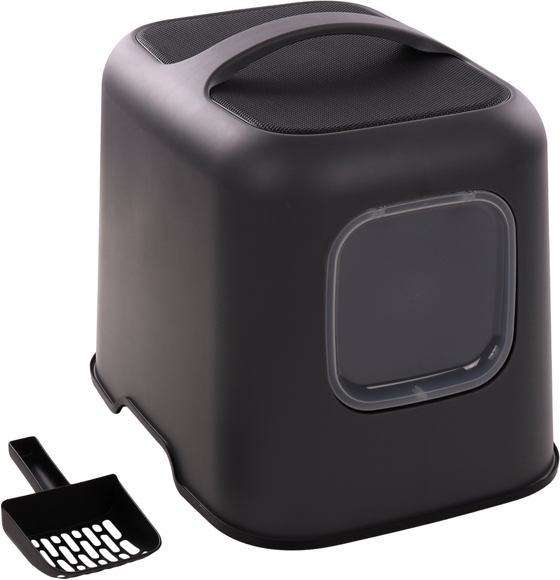 Se hieman erinäköinen hiekkatalo. Magneettiovi ja aktiivihiilisuodatin pitävät hajut tehokkaasti poissa ja mukana tuleva lapio on samaan tyyliin sopiva.