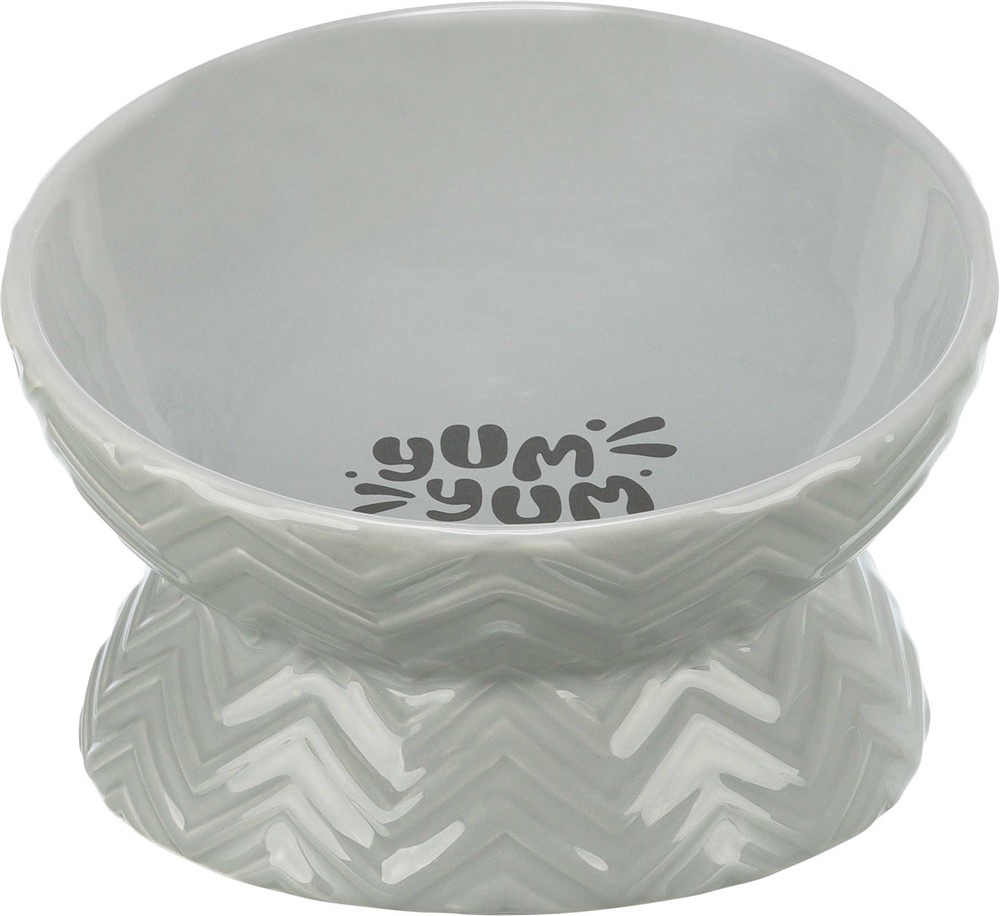 Ergonomisesti muotoiltu, korotettu keraaminen kuppi, josta lemmikin on helppo ruokailla. Kaunis kuvioitu pinta. Sisäpuolella teksti 'YumYum'.