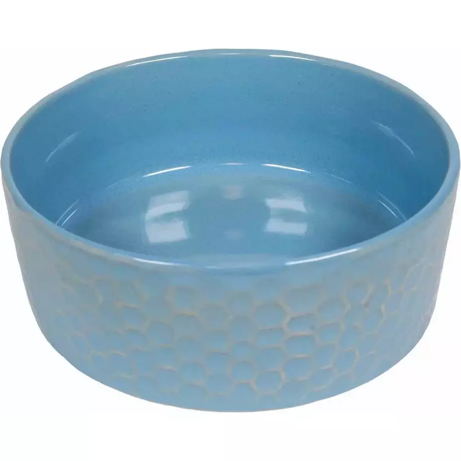 Kaunis ja käytännöllinen keraaminen ruokakuppi, jossa on sinisävyinen eläväpintainen lasitus, joka tekee jokaisesta kupista yksilöllisen. Kupin halkaisija on 15 cm ja tilavuus 750 ml, joten se sopii sekä ruoalle että vedelle kissoille ja pienille koirille. Strukturoitu ulkopinta antaa koristeellisen ilmeen ja parantaa otetta käsiteltäessä. Lasitettu sisäpinta on helppo pitää puhtaana, ja painavampi rakenne pitää kupin tukevasti paikallaan myös innokkaiden ruokailujen aikana. Käytännöllinen kuppi, joka tuo samalla väriä ja luonnetta ruokailupaikalle.