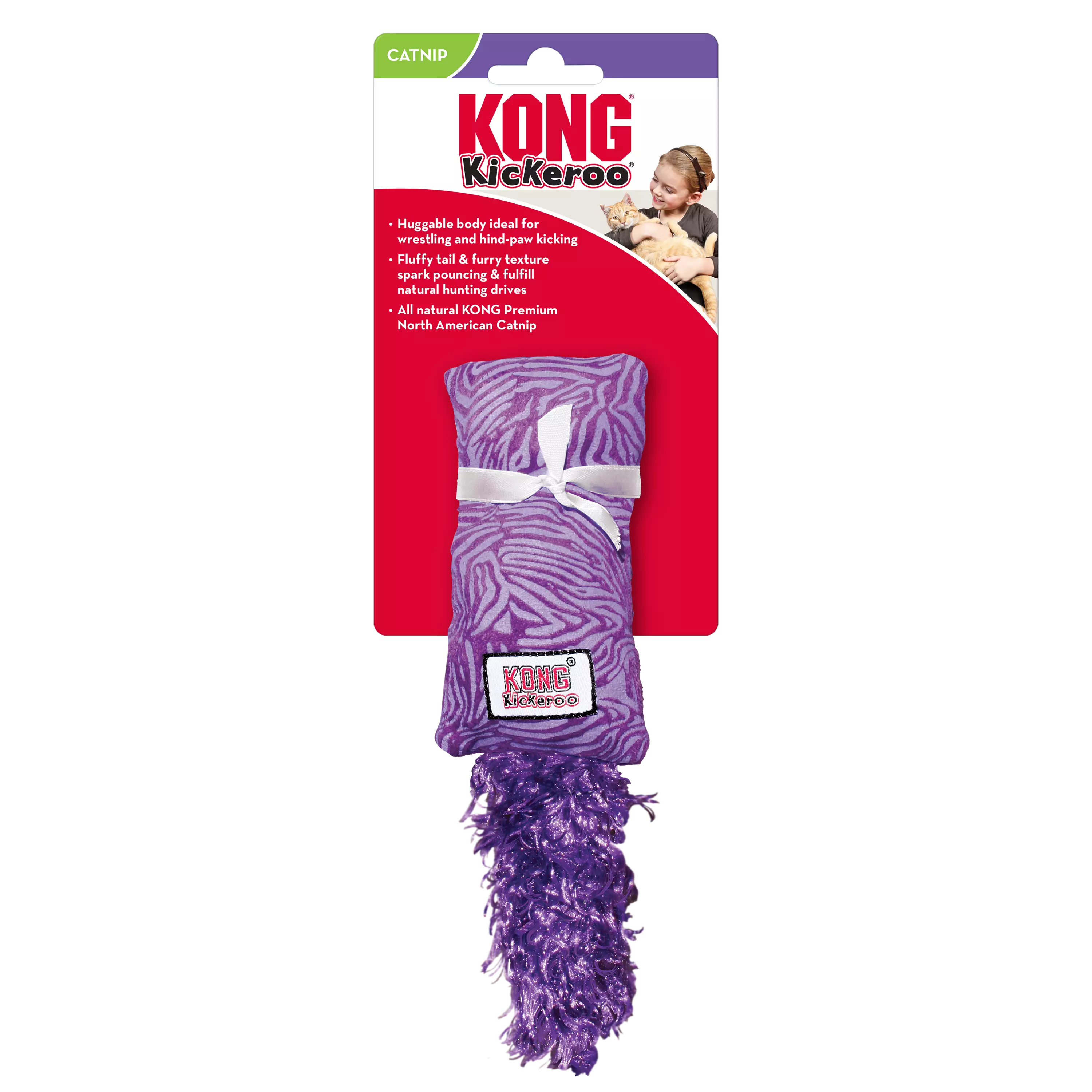 Tämä Kickeroo™ on erityisesti pennuille mitoitettu. Sen pitkä runko houkuttelee terveelliseen takajaloilla potkimiseen ja tukee koko kehon liikettä kasvavilla kissoilla. Pehmeä häntä herättää saalistusvietin, ja rapiseva ääni yhdessä KONGin ensiluokkaisen pohjoisamerikkalaisen kissanmintun kanssa lisää hauskuutta ja pitkittää leikkiä.