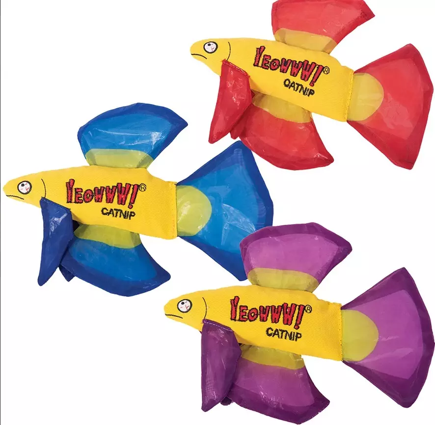 Yeowww! Mo Betta Fish -lelu on täytetty vastustamattomalla, voimakkaalla kissanmintulla. Tämä kissanminttu on luomuviljeltyä ja syy siihen, miksi Yeowww! on tullut niin tunnetuksi! Lelussa on lisäksi rapisevat evät, jotka stimuloivat kissan vaistoja entisestään. Pidä lelu piilossa leikkihetkien välillä ja anna se uudelleen myöhemmin, jotta se pysyy kiinnostavana.