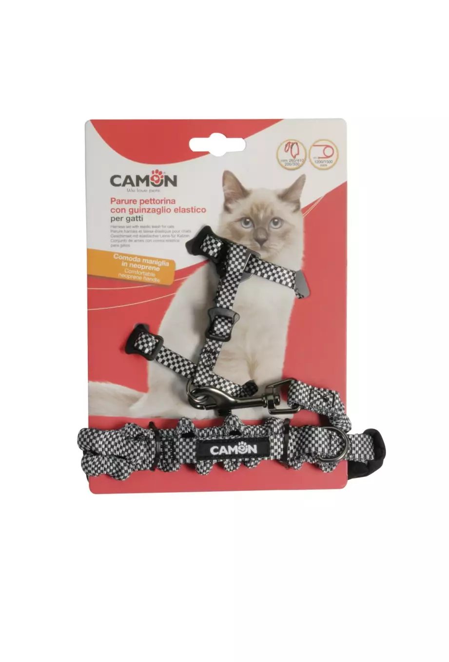 Kissanvaljaat joustavalla taluttimella harmaa ruutukuvio Camon
