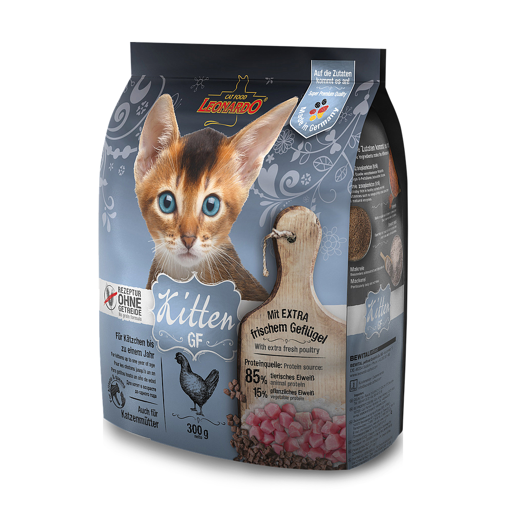 Monet kissanomistajat suosivat viljattomia vaihtoehtoja valitessaan ruokaa kissanpennulle. LEONARDO Kitten viljattomassa ruoassa käytetään amaranttia joka on arvokas gluteiiniton vaihtoehto viljoille. Makrilli ja tuore siipikarja tarjoavat herkullisen makuelämyksen pennuille. Resepti täydentyy muilla tarkoin valituilla ainesosilla kuten Meriplankton (Krilli) ja chian siemenet, jotka ovat elintärkeiden aineiden kuten omega-3 rasvahappo, luonnollisia lähteitä. Tärkeät ainesosamme tarjoavat kissanpennulle optimaalisen alun kasvuun ja kehitykseen.