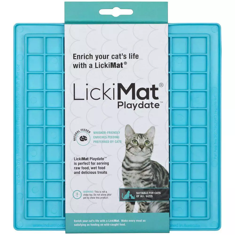 Lickimat on kehitetty ehkäisemään kissasi tai koirasi ikävystymistä ja antamaan luotaista touhua energian kuluttamiseksi. Levitä eläimen suosikkiruokaa matolle, jotta he voivat etsiä jokaista suupalaa kielellään. Nuoleminen on eläimelle rauhoittavaa ja se lisää makuaistia antamalla eläimen nauttia pienestä määrästä ruokaa. Matto estää ahmimista, koska ruokailu kestää kauemmin, se saa eläimen syömään hitaammin ja edistää terveellistä hengitystä raaputtamalla bakteereja ja ruokaa kieleltä. Syljen tuotantoa stimuloidaan ja se auttaa puhdistamaan hampaat, ikenet ja kielen.