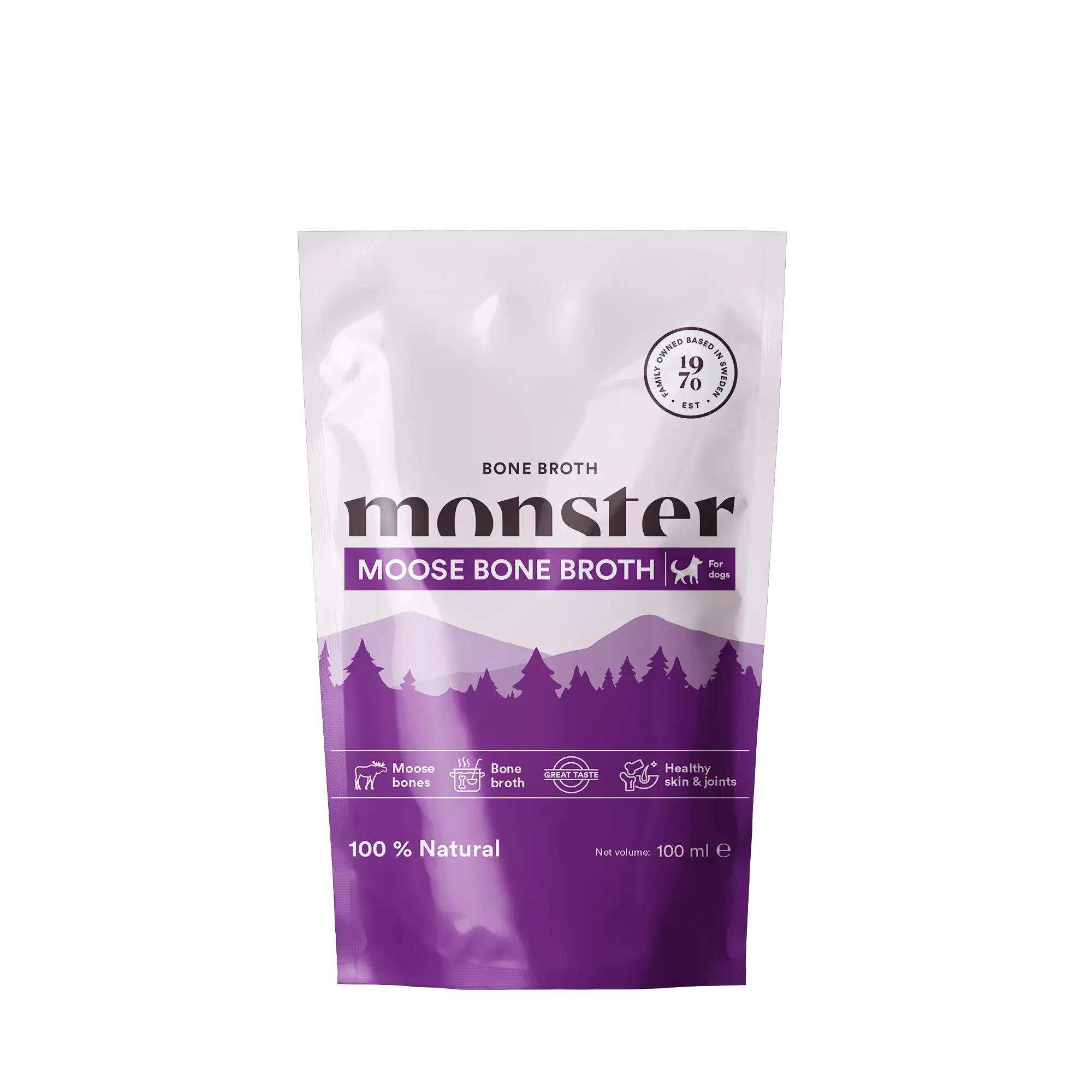 Anna Monster Bone Broth -lientä joka päivä, jos haluat tarjota koirallesi makuelämyksen, vaihtelua tai lisätä nestettä sen ruokavalioon. Kaada kuivamuonan päälle tai sekoita se aterian joukkoon.