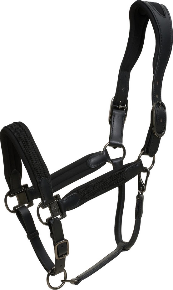 Nahkariimu pehmusteilla, valmistettu pehmeästä, korkealaatuisesta italialaisesta nahasta. Anatomisesti muotoiltu niskahihna, jossa paksu neopreenipehmuste parhaan mukavuuden takaamiseksi. Neopreenipehmustettu turpahihna ja poskihihnat, joissa on punottu joustava päällys, mikä antaa ainutlaatuisen viimeistelyn. Tyylikkäät, tummat metalliosat.