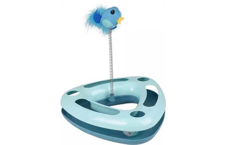 Kissan puuhakeskuksessa yhdistyy tunneli, kilisevä leikkipallo, jousessa oleva höyhenlintu sekä kissanminttu, pitkäaikaista puuhastelua kissallesi.