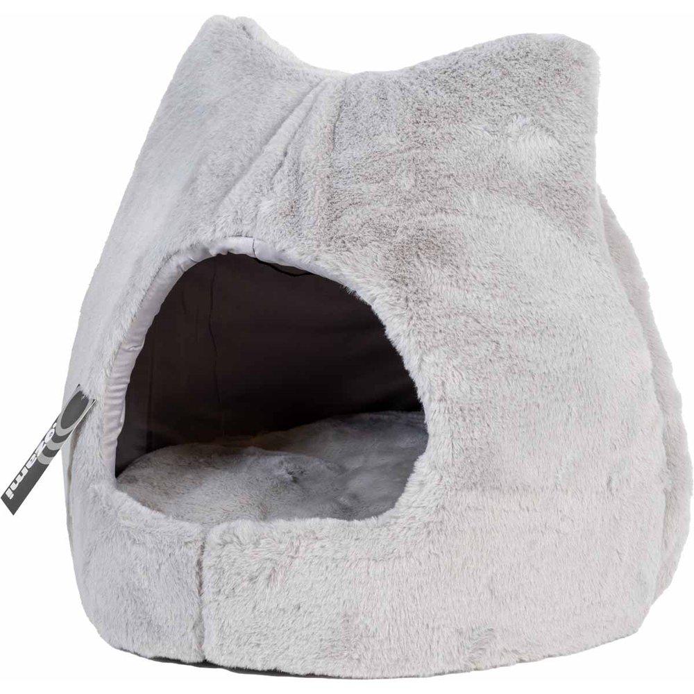 Pehmeä ja turvallinen, pesämäinen iglu korvilla lemmikillesi omaksi nukkumispaikaksi.