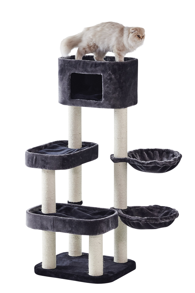 Raapimapuu Fran 137cm tumman harmaa Nobby Raapimapuu Fran - pohja 55 x 50 cm - sisaltolppien halkaisijat Ø 9 cm - useita tasoja joista 2 pehmustettua - 2 pussipetiä ja ylimpänä pesä/petitaso.... Lue lisää