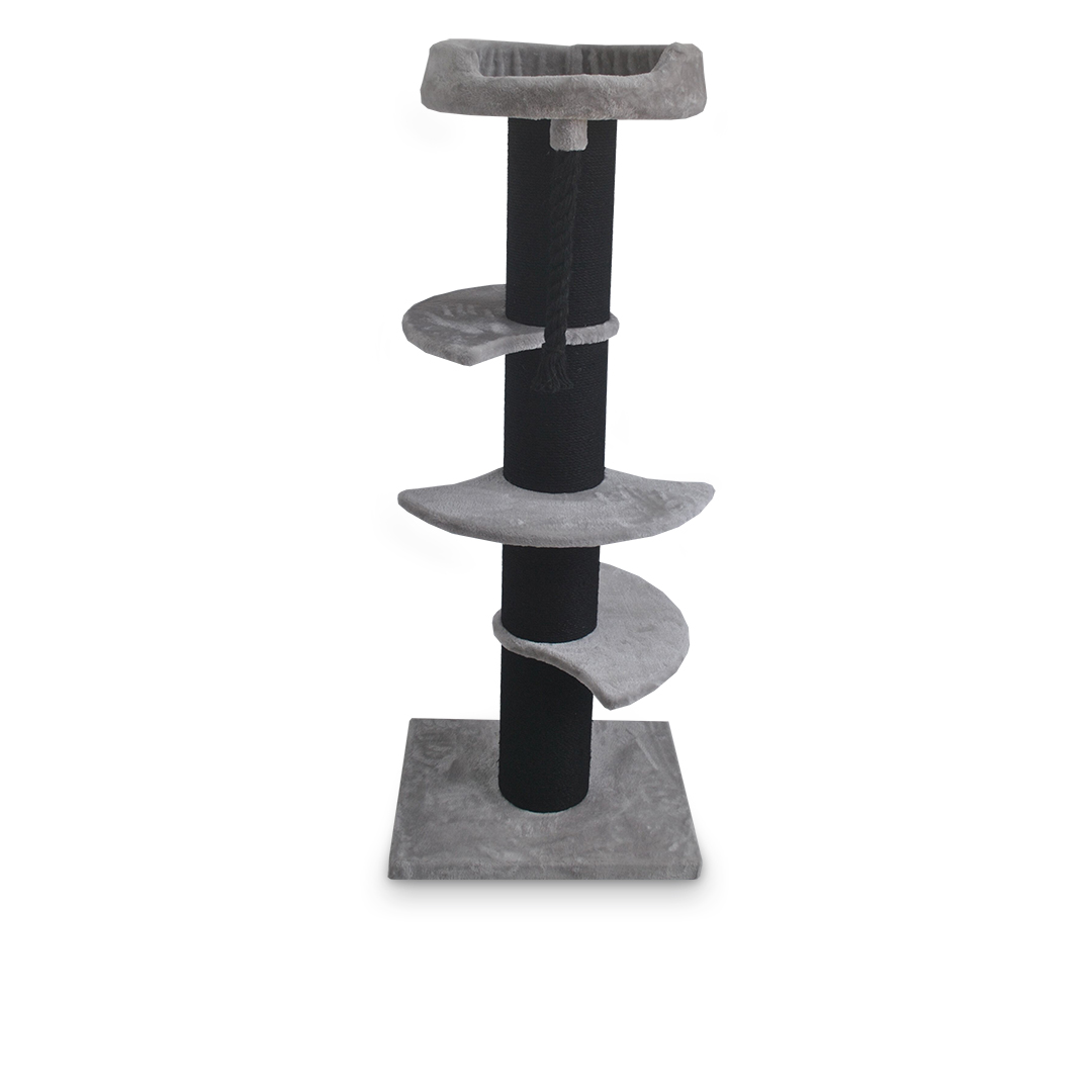 Kiipeilypuussa on paksu, suora tolppa peitettynä raapimiseen innostavalla sisalnarulla ja varressa on useita lepopaikkoja kissasi tähystyspaikoiksi.