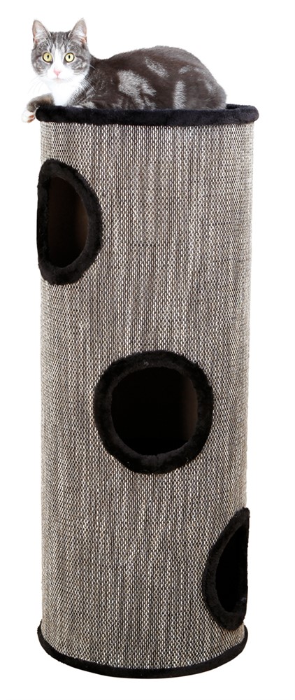 Kissan raapimapuu neljällä tasolla ja kolmella luolalla. Päällimmäisenä pehmustettu tyyny. Sisäpuoli verhoiltu pehmeällä plyyshillä.