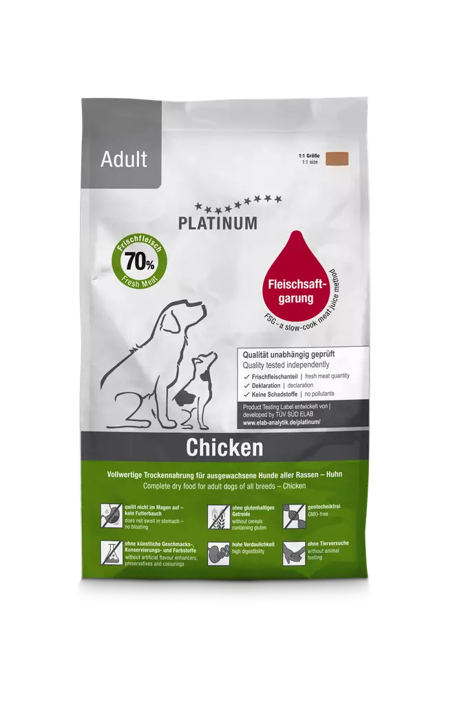 Platinum Chicken, puolikostea täysravinto koirille, sopii hyvin myös namipalaksi ja nirsoille koirille.