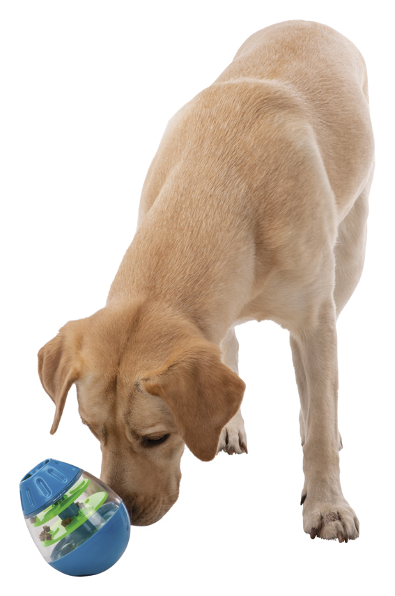 Lataa aktivointilelu ja anna koiralle, namipalat putoavat koiran keikutellessa lelua. Neljä säädettävää levyä lelussa säätävät namien saamista ja määrittävät vaikeusasteen.
