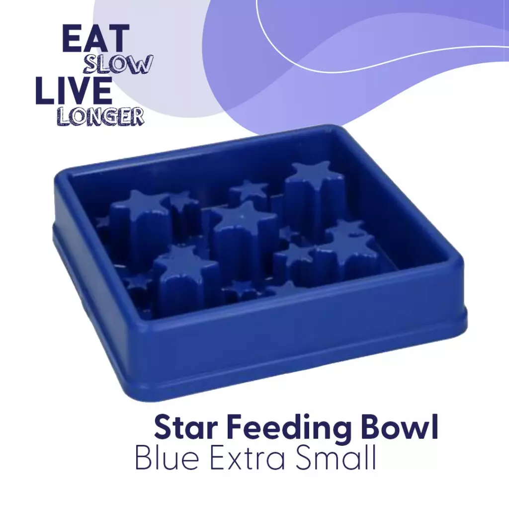 Eat Slow Live Longer Star -ruokakupin avulla ahmiminen jää historiaan! Kupin spiraalimainen muoto vaikeuttaa koiran tai kissan pääsyä kuivaruokaan, jolloin eläin ottaa pienempiä suupaloja, syö hitaammin ja pureskelee paremmin. Ahmimisenestokupissa on liukumattomat jalat ja se kestää konepesun. Nopea syöminen tai ahmiminen voi aiheuttaa monia ongelmia, kuten liikalihavuutta (koska ruoka ei sula kunnolla), mahalaukun kiertymää ja ilmavaivoja (koska eläin nielee enemmän ilmaa). Ahmimisenestokuppi voi auttaa vähentämään tai ehkäisemään näitä ongelmia.
