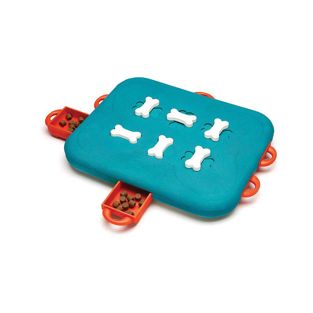 Nina Ottosson Dog Casino aktivointipeli on suunniteltu kaksiosaisella toiminnalla, joka tarjoaa palkintoja nokkeluuden ja taitavuuden avulla.