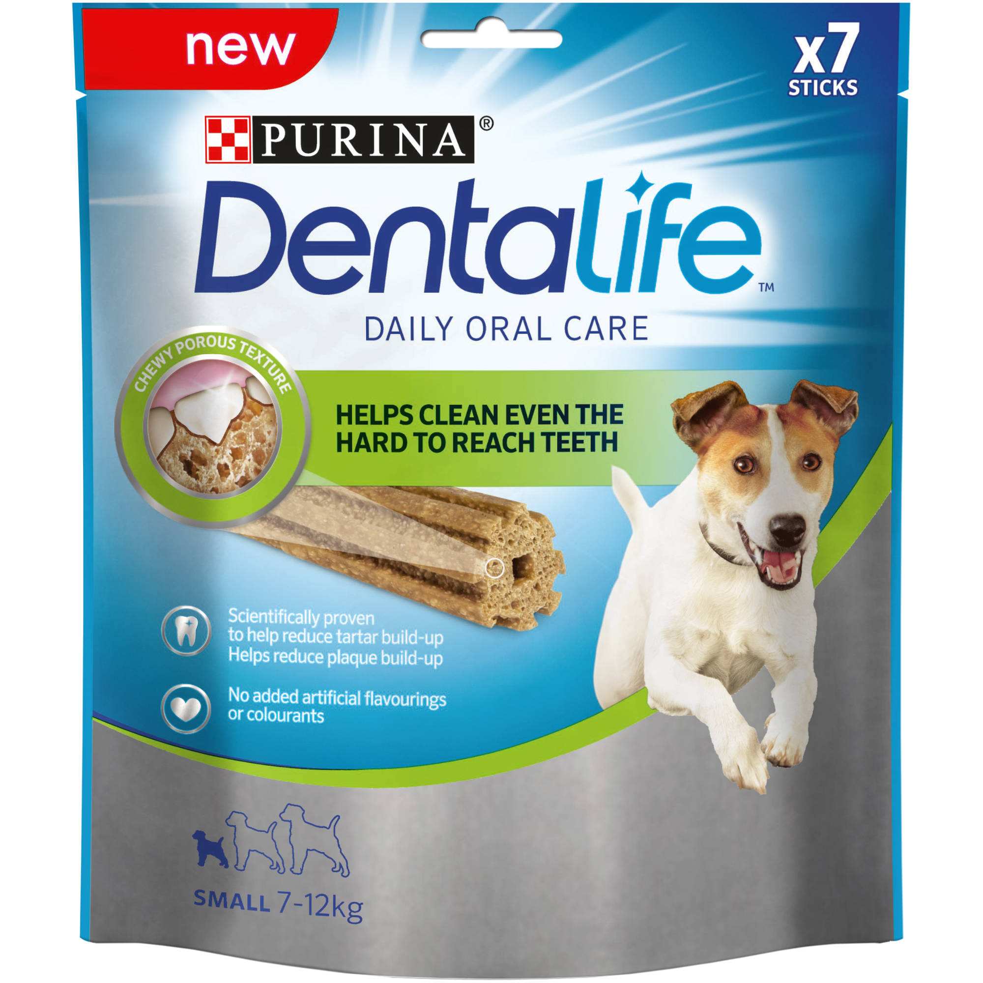 Purina Dentalife on täydellinen valinta pienten, 7-12 kg painoisten koirien päivittäiseen suuhygieniaan. Tämä terveellinen ja tehokas dental-herkku on suunniteltu tukemaan lemmikkisi hampaiden ja ikenien hyvinvointia. Purutikut ovat huolellisesti valmistettu ainutlaatuisella huokoisella koostumuksella, joka auttaa puhdistamaan myös vaikeapääsyiset hampaat.