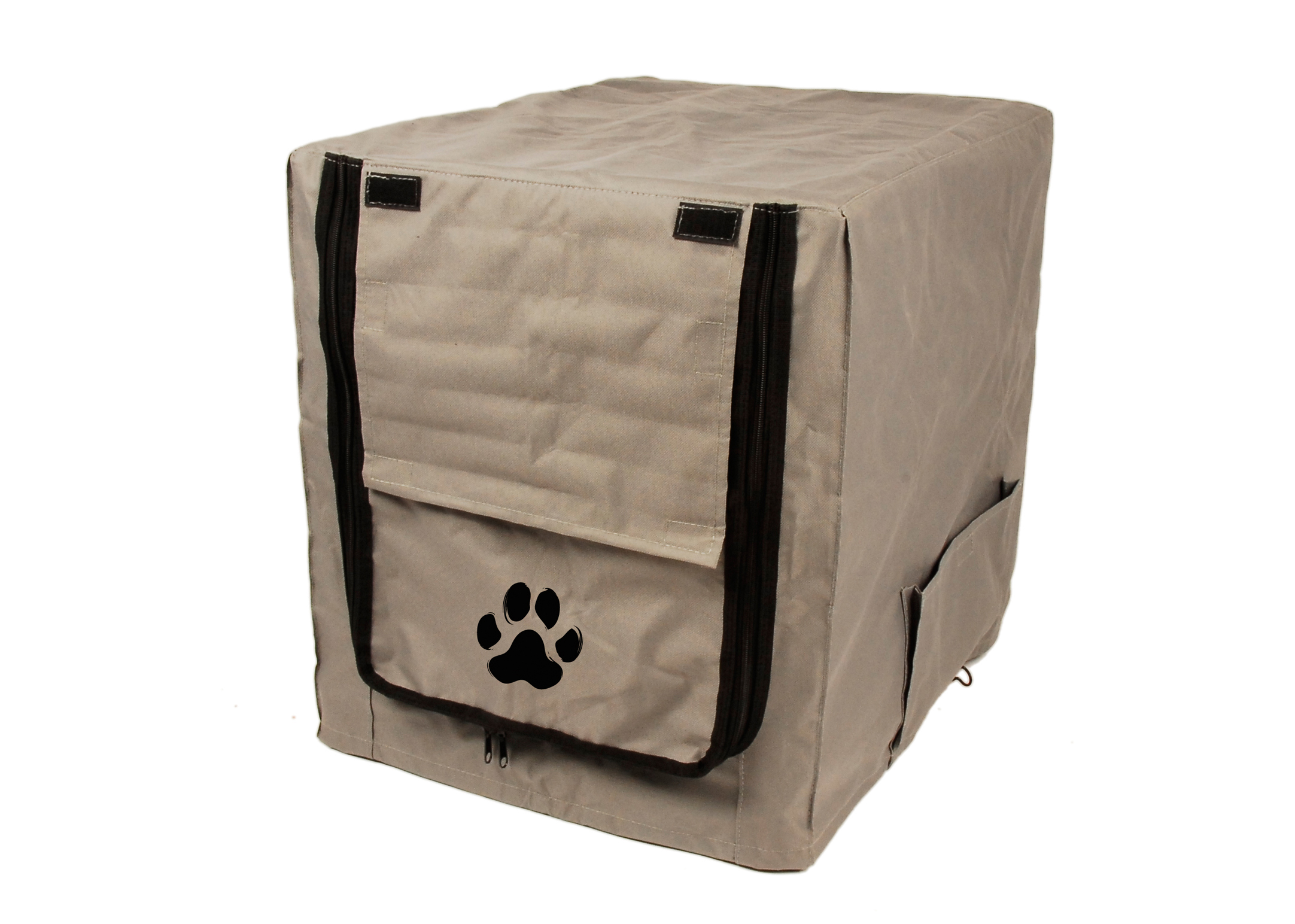 Vahva ja käytännöllinen häkinpäällyste, joka on valmistettu raskaasta kankaasta. Suunniteltu sopimaan Show Tech American -häkkeihin, nämä päälliset ovat tuulen- ja vedenpitäviä, ja niissä on yksi aukko peiton lyhyellä puolella. Sivuilla on 2 taskua ja etuaukko voidaan helposti sulkea vetoketjulla, jolloin verkkopaneeli varmistaa, että koirallasi on tarpeeksi raitista ilmaa. Koristeltu somalla tassulla.