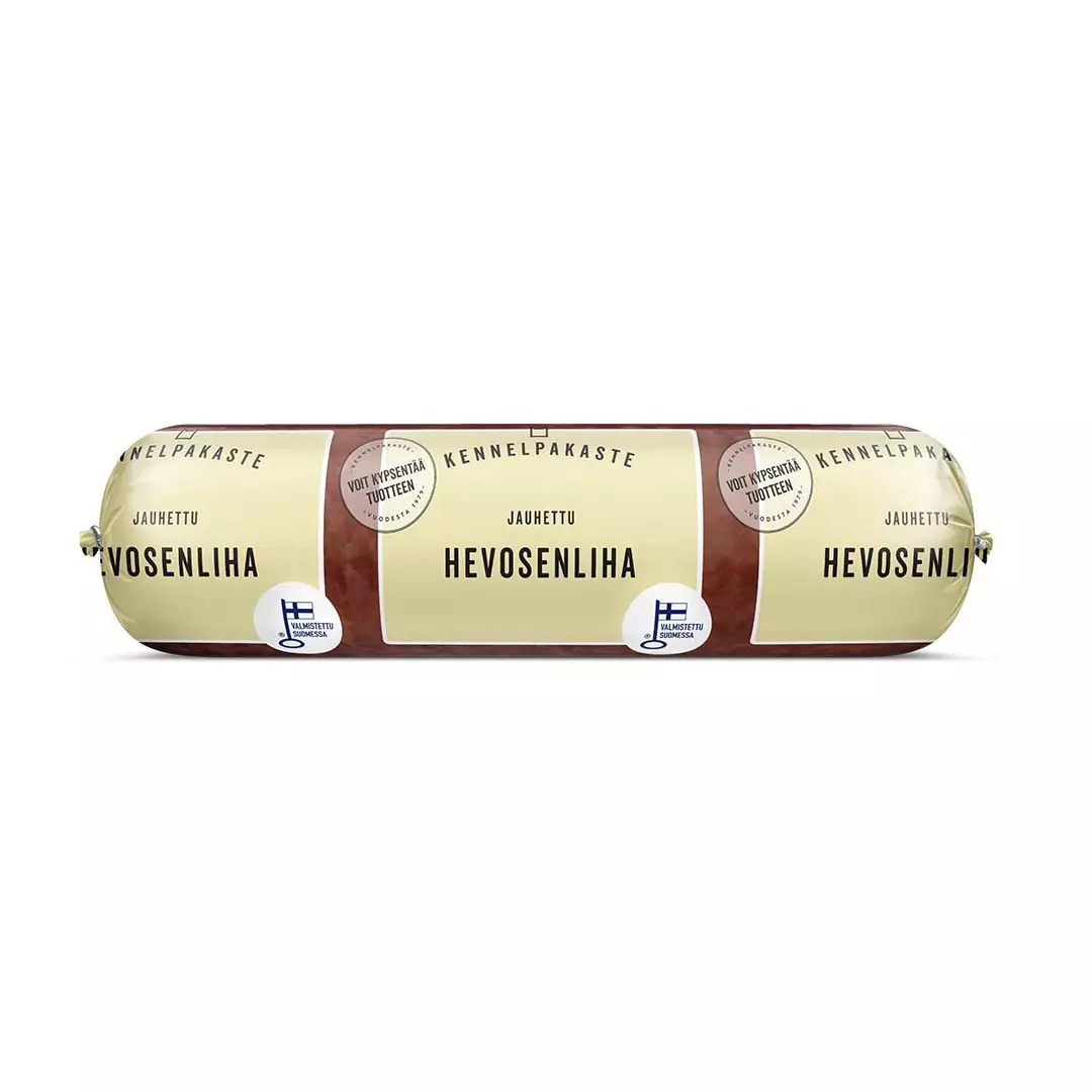 100% luonnollista hevosenlihaa pötkössä. Tuote ei sisällä luuta eikä rustoa, (ei myöskään sisäelimiä) ja voit tarjota lihaa sellaisenaan tai vaikka kypsentää lihapyörykät lemmikillesi.