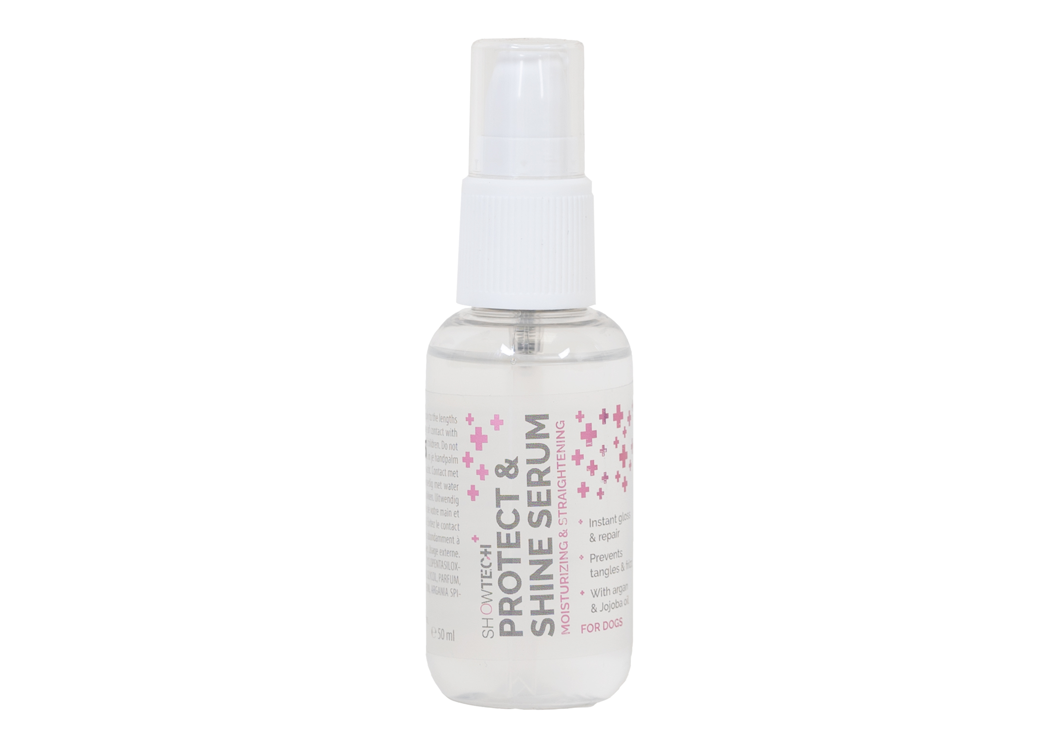 Show Tech + Protect and Shine Serum on täydellinen valinta koiran turkin korjaamiseksi ja kosteuttamiseksi.
