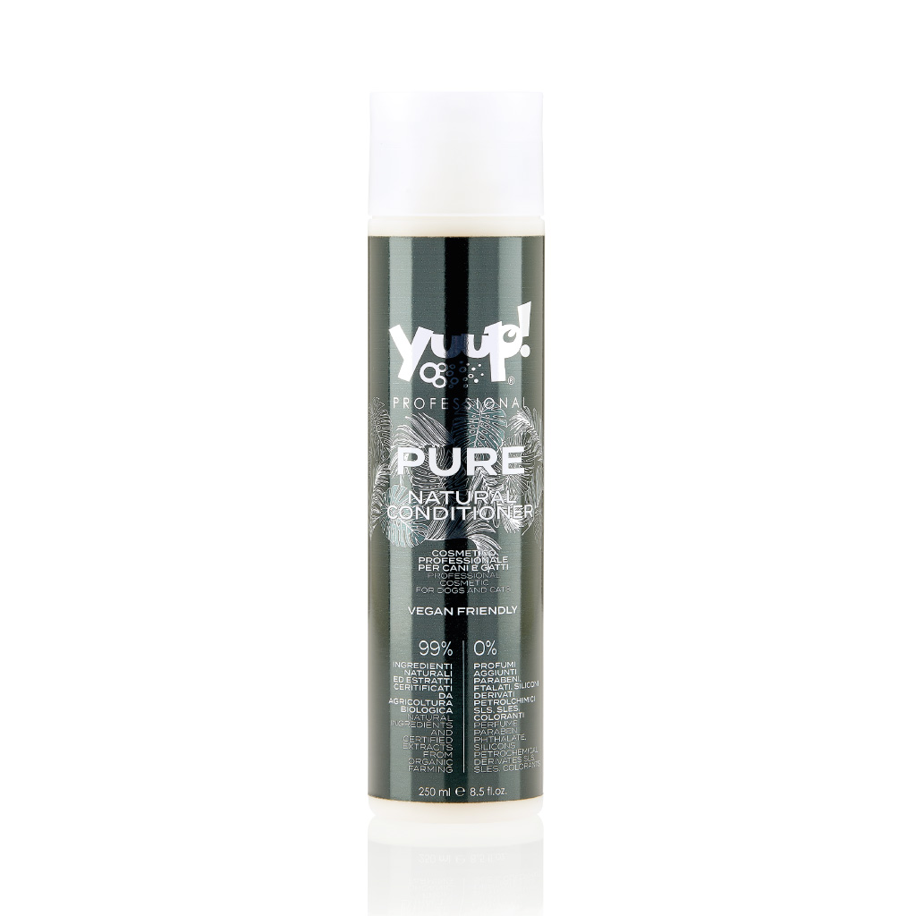 YUUP! CONDIOTINER PURE NATURAL PROFESSIONAL -sarjan ainutlaatuinen hypoallergeeninen hoitoaine. Tunnistat sen takuuvarmaksi Yuup!-tuotteeksi sen reseptin pääkohdista eli kasvisperäisistä hoitavista ainesosista, karvan rakennetta korjaavasta keratiinista, sekä runsaasta kasvisuutesisällöstä – mutta täysin ilman lisättyjä hajusteita tai väriaineita! Tuote on hyvin Detangling Conditioner hoitoaineemme kaltainen ja todettu testeissä sopivan monille erilaisille karva- ja turkkilaaduille, varsin yleiskäyttöinen siis.