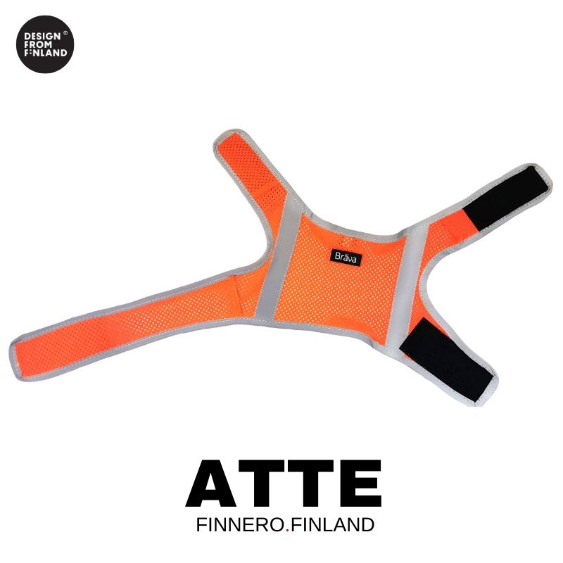 ATTE-huomioliivi on kevyt heijastinliivi koiralle lisäämään näkyvyyttä ulkoillessa niin metsällä kuin lenkkipoluillakin.