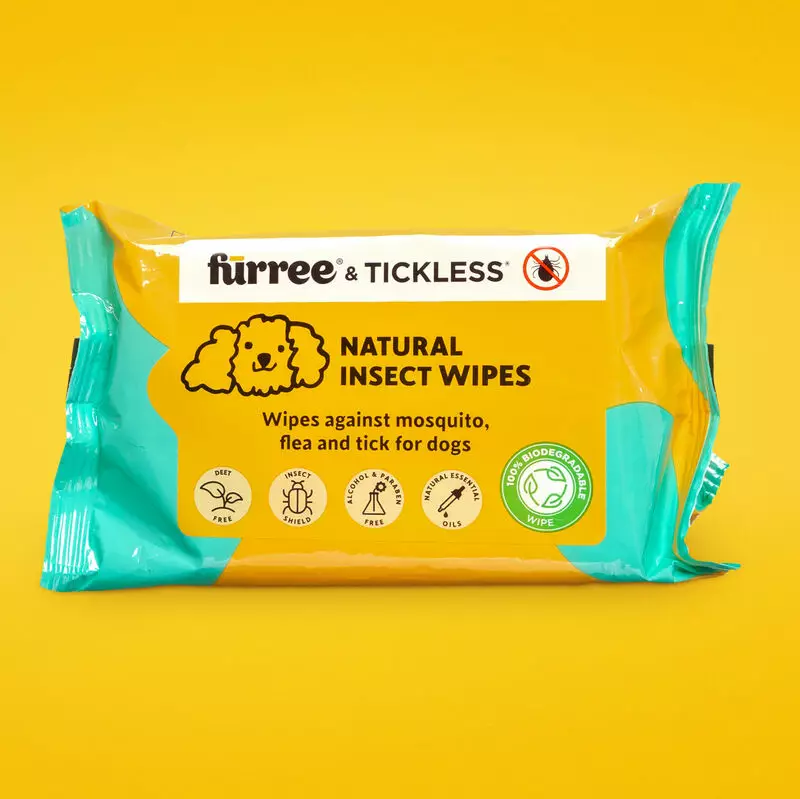 Furree & Tickless Natural Insect Wipes, kosteuspyyhe hyönteisten torjuntaan! Luonnollinen suoja hyönteisiä, punkkeja ja kirppuja vastaan.