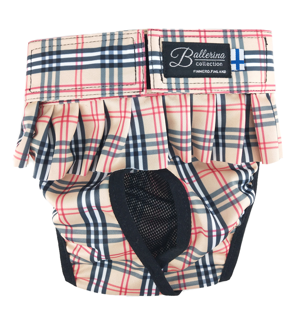 FINNERO BALLERINA -juoksuhousut ovat narttukoiran juoksuajan "pelastus", jotka suojaavat kodin pintoja ja sisustustekstiileitä juoksuajan tahroilta niin kotona kuin kyläillessäkin. Juoksuhousut sopivat myös virtsankarkailun avuksi esim. leikatuilla tai vanhemmilla nartuilla. Narttukoirat saattavat myös merkkailla sisätiloissa, etenkin juoksuajan lähetyessä. Kyläily sujuu rennommin kun juoksuhousut ovat jalassa.