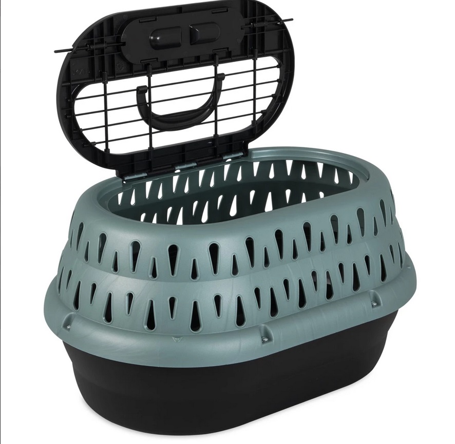 Päältävä avattava muovinen kuljetuslaatikko alle 4,5kg lemmikeille. Tukeva kahva helpottaa kantamista ja ilmareiät ovat koko boxin ympäri.