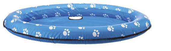 Hauska kelluva allas, jonka pohjalla oleva vesi vaihtuu pohjassa olevien reikien avulla. Ilmalla täytettävät reunat pitävät altaan pinnalla, ja koirasi saa rauhassa nauttia raikkaan veden tuomasta viilennyksestä. Pakkauksessa mukana muovinen ilmapumppu.