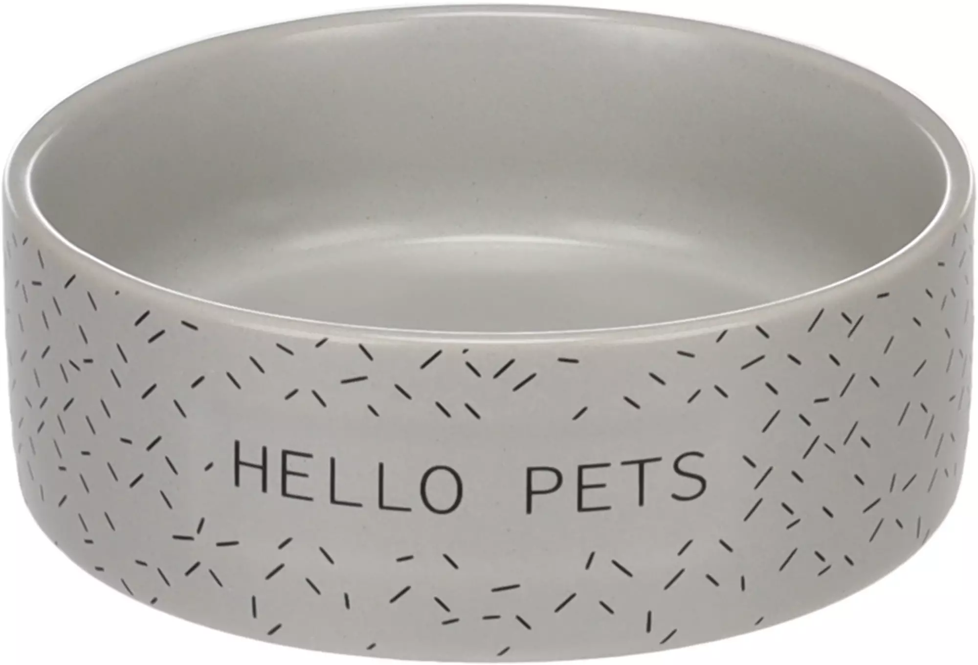 Kaunis, harmaa keramiikkakuppi, reunassa teksti 'Hello Pets'. Kolme eri kokoa, konepesun kestävä.