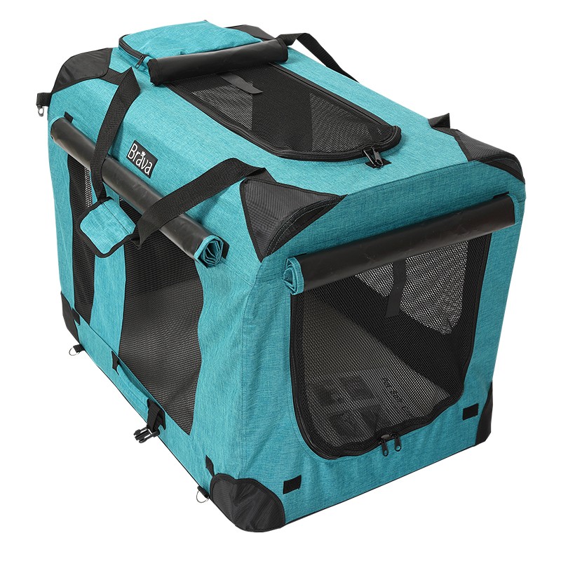 Brava Highway Koiran kevythäkissä on huomioitu kaikki yksityiskohdat koiran mukavaan matkustukseen ja oleskeluun. Kaikkien verkkoikkunoiden yläpuolella on verhokangas, joka on helppo laskea alas ja rullata ja kiinnittää helposti tarranauhalla ylös. Alas laskettu verho antaa koiralle omaa rauhaa ja suojaa säältä, kun taas ylös nostettuna näköyhteys ympäristöön säilyy ja ilmanvaihto häkkiin paranee. Häkin pohjalla on vetoketjupäällisellä varustettu irrallinen makuualusta. Kangashäkki on käytössä miellyttävän hiljainen ja koiralle mukavan tuntuinen sen esim. nojatessa tai painaessa päänsä häkin seinää vasten levätessään. Häkin kangas ja pohja ovat vedenpitävät.