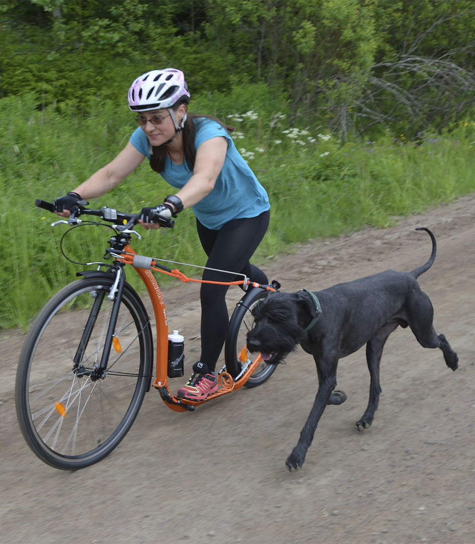 Kainpo koiranjuoksutusadapteri Combi PLUS, erinomainen apuväline koiran turvalliseen juoksuttamiseen. Laite on asennettavissa polkupyörään, Kickbike potkulautaa ja Kickspark - potkukelkkaan.