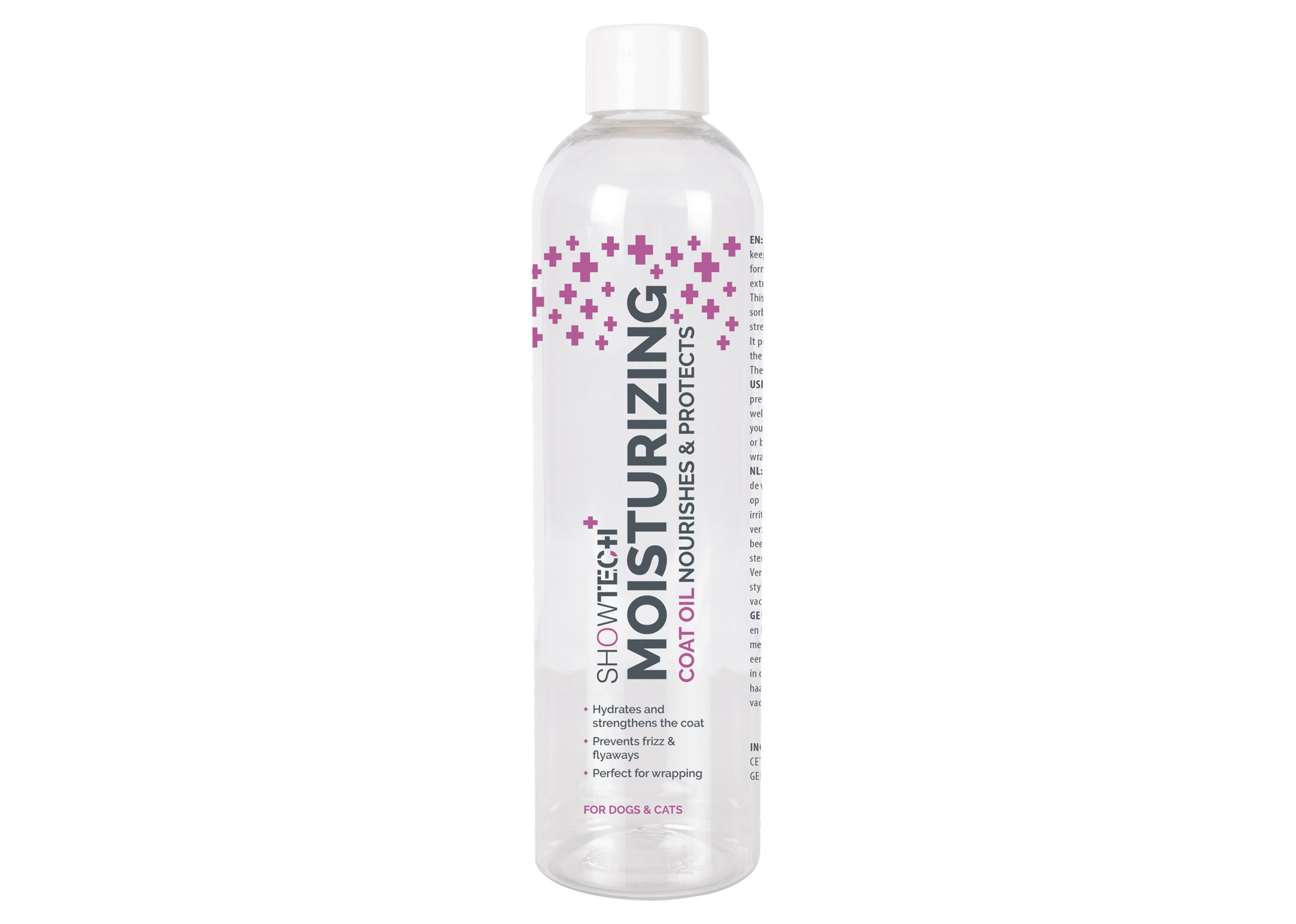 Mieto Show Tech+ Moisturizing Coat Oil varmistaa, että karvaisen ystäväsi turkki pysyy kunnossa pitkään. Se imeytyy nopeasti turkkiin ja tekee ihmeitä. Se ei ainoastaan kosteuta, ravitse ja vahvista karvaa, vaan edistää myös kimmoisuutta ja pehmeää, ylellistä kiiltoa. Tämä mineraaliöljyä sisältävä kosteuttava hoitotuote on turvallinen käyttää kaikille väreille, erittäin suositeltava kuivalle ja hauraalle turkille ja erinomainen halkeille päille.