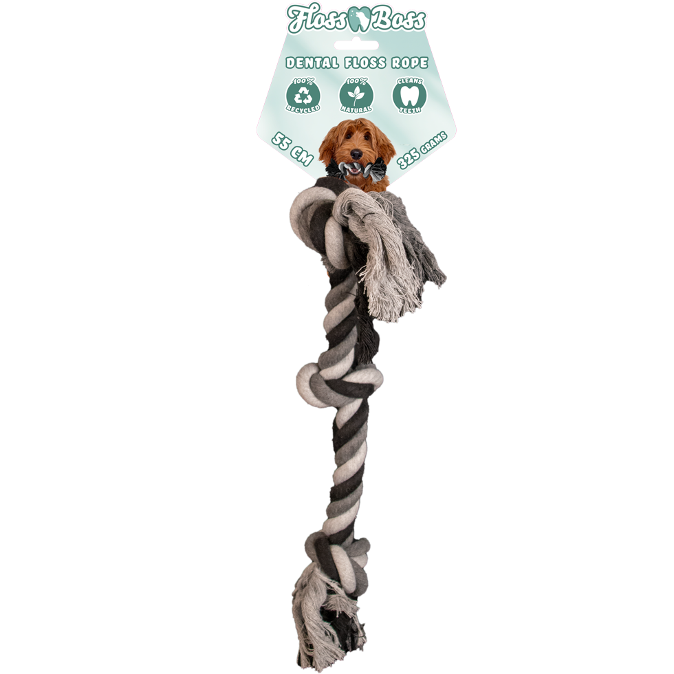 Floss Dental -lelut on tarkoitettu paitsi leikkimiseen, myös puhdistamaan hampaita ja ikeniä. Mukavaa hammashoitoa sinulle ja koirallesi. Eri pituuksia.