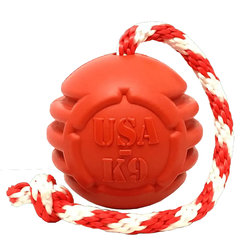 SodaPup USA-K9 Stars and Stripes Ultra-Durable Durable Rubber Chew Toy, Reward Toy, Tug Toy, and Retrieving Toy - Red