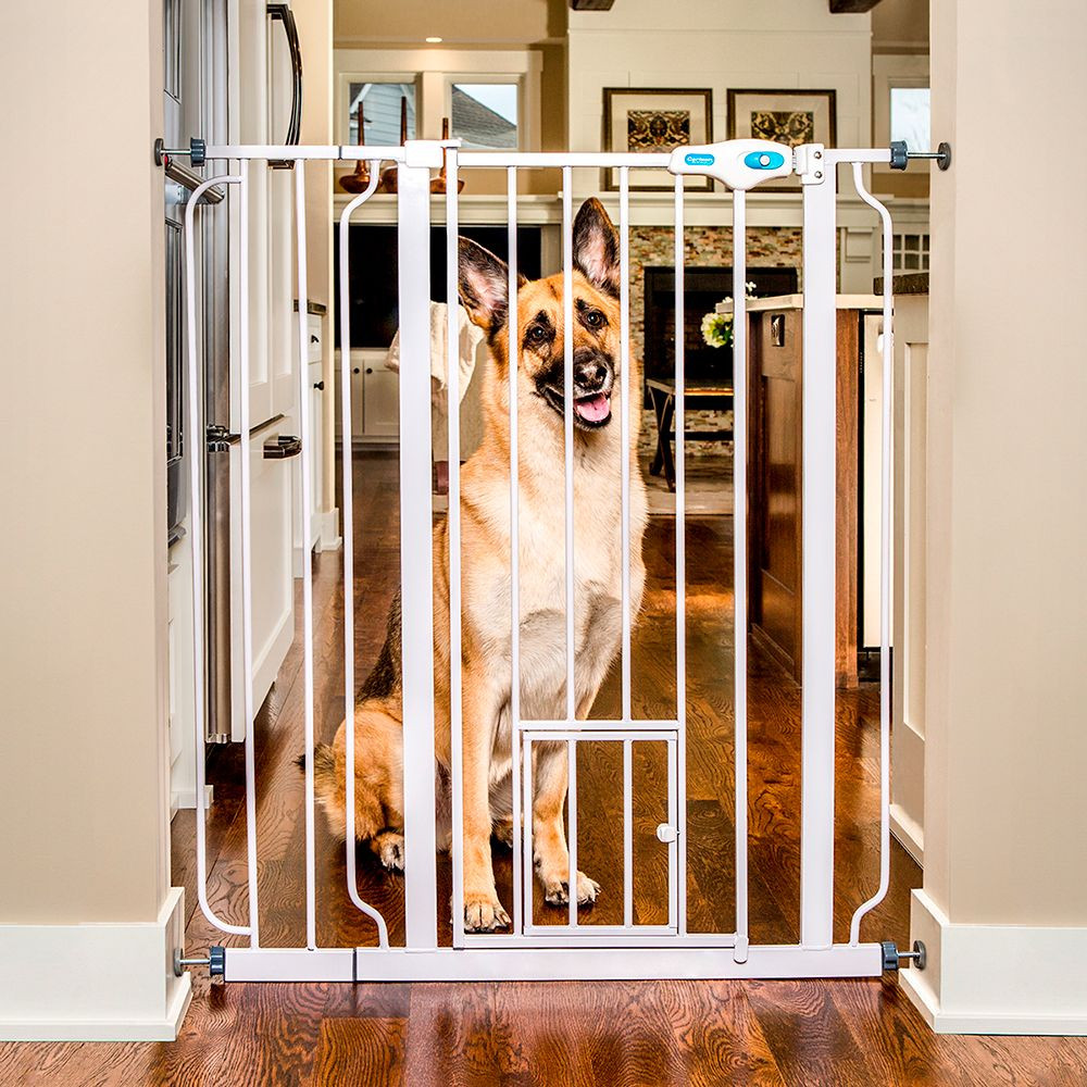 Erittäin kestävä, teräsrakenteinen Carlson lemmikkiportti, säädettävällä leveydellä.
