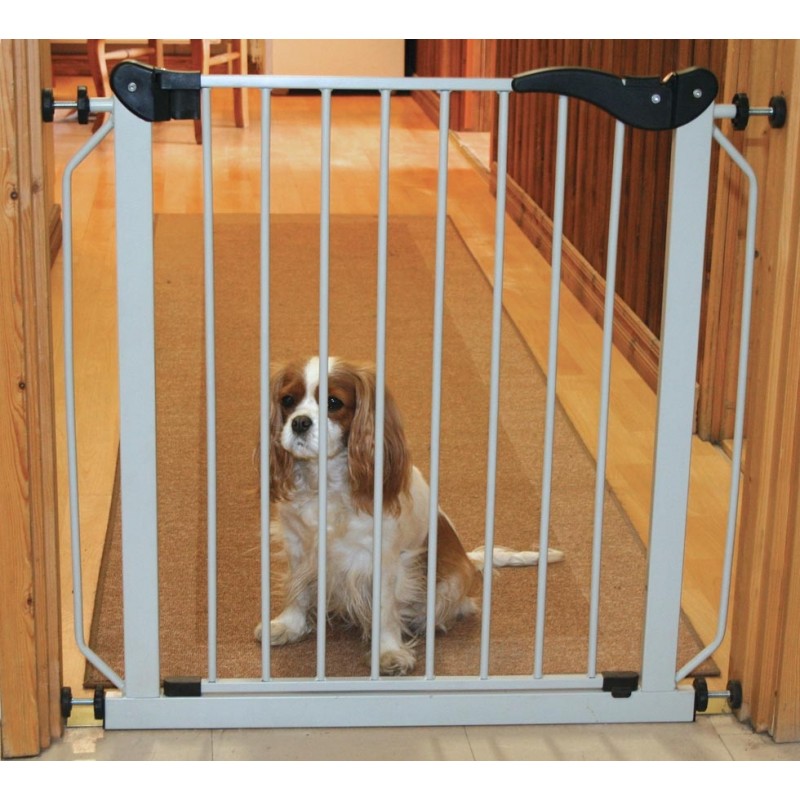 Tukeva metallinen portti lemmikkikotiin. Tyylikäs vaaleanharmaa portti on nopea kiinnittää ja irrottaa oviaukosta. Kulkeminen portista on sujuvaa: portin lukkomekanismin saa avattua yhdellä kädellä. Portti aukeaa molempiin suuntiin. Kulkuaukon leveys 58 cm. Portin pinnojen väli on 5 cm. Turvalliset myös lapsille: täyttävät EN1930: 2000 -standardin turvamääräykset.