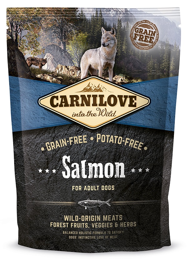 Runsaasti lohta sisältävä ja herkullinen kuivaruoka aikuisille koirille. Lohi on erinomainen helposti sulavien proteiinien lähde. Se sulaa elimistössä helposti, ja sillä on tulehduksia estävä vaikutus. Carniloven kuivaruoka tukee koiran aivotoimintaa sekä immuniteettia. Lohi ja lohen rasva ovat hyväksi silmien terveydelle, jonka lisäksi ne kohentavat ihon ja turkin kuntoa sekä ulkonäköä. Se antaa myös tukea nivelille. Kuivaruoka pitää sisällään 70 % monipuolisia eläinproteiinilähteitä, 30 % marjoja, kasviksia ja yrttejä. Näiden yhdistelmä on hellävarainen ruoansulatukselle. Carniloven kuivaruoka ei sisällä lainkaan keinotekoisia kemikaaleja, säilöntäaineita tai väriaineita. Lohessa on runsaasti tyydyttymättömiä Omega-3-rasvahappoja, jotka tukevat kognitiivista kehitystä, sydän- ja verenkiertoelimistön hyvinvointia sekä kiihdyttävät aineenvaihduntaa alentamalla verensokeria. Ei viljoja, perunaa tai GMO-ainesosia.