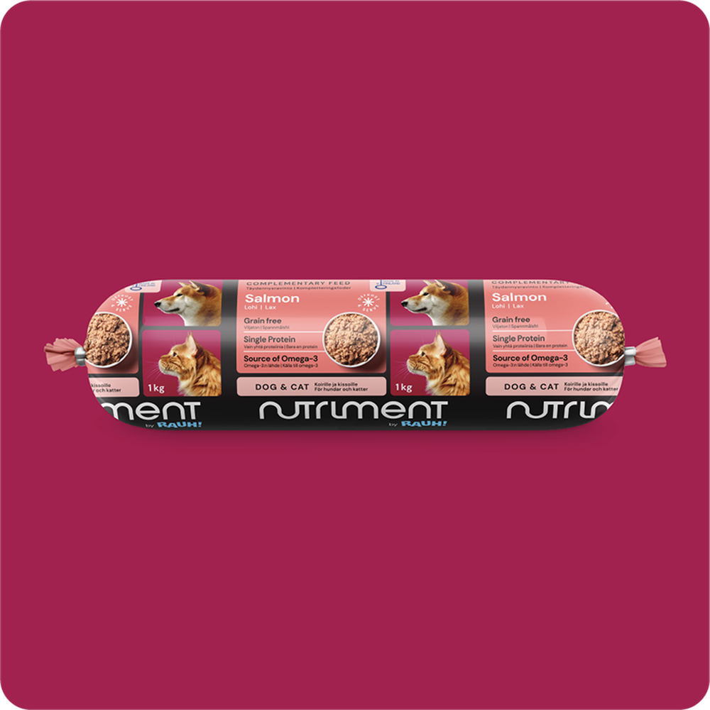 Nutriment by RAUH raakapakasteet on puhtaista raaka-aineista valmistettua raakaruokaa ilman säilöntäaineita. Sisältää ruotoineen jauhettua lohta. Sopii sekä koirille ja kissoille täydennysravinnoksi muun ravinnon lisänä. Erinomainen luontainen omega-3 lähde. Sulata, tarjoile ja anna lemmikkisi nauttia!